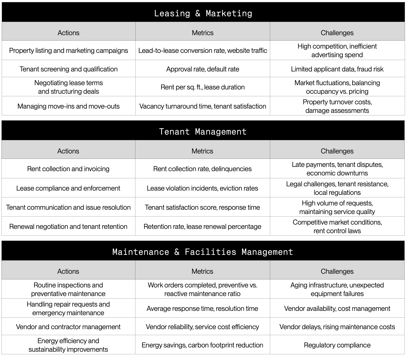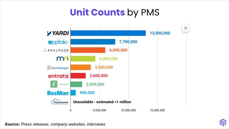 Before real estate firms embraced technology, property management was highly fragmented. Leases were tracked in diaries, maintenance requests handled through paperwork, and financials processed manually. Proptech’s first real breakthrough came not from disruption, but from centralization. Property management systems (PMS) like Yardi, MRI, RealPage, AppFolio, and Entrata consolidated leasing, accounting, maintenance, and tenant communications into a single platform. Yet, no single PMS could address every need, especially from a user experience perspective, leading to the rise of specialized point solutions. These solutions integrate with PMS platforms but also compete with them, creating a push-pull dynamic between deeply entrenched incumbents and new entrants.