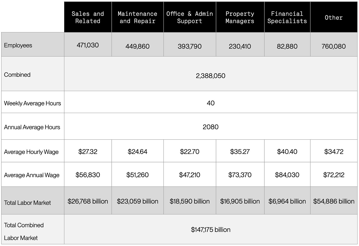 The US real estate industry employs over 2.3 million professionals, with a total labor market of $147 billion in annual wages. AI won’t replace these roles but will streamline workflows, reduce manual tasks, and enhance decision-making. Property managers can handle larger portfolios with fewer resources, investors will benefit from faster underwriting and risk modeling, and back-office tasks like accounting and compliance will become more automated.